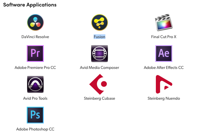 DaVinci Resolve, Final Cut Pro X internal effects. Adobe Premiere Pro CC Mercury Playback Engine effects. Avid Media Composer internal effects.