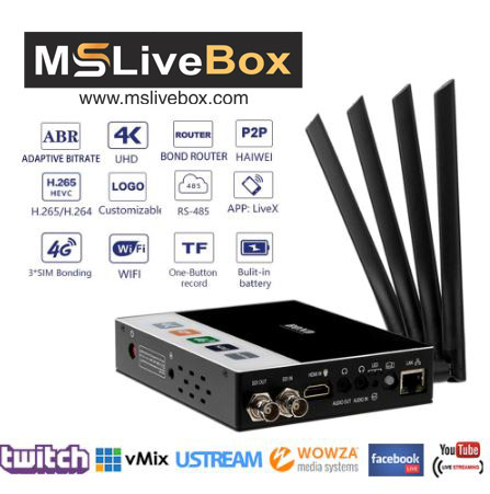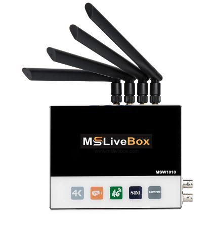 - Model MSW1010 Video Input HDMI/SDI Video Compression H.264/H.265 Recording Mp4 Video format PAL NTSC 1080I: 50/60 fps Streaming resolution 480*270 640*360 1280*720 1920*1080 Recording resolution 1080p60 SD Card TF max 2TB 4G network 3X SIM TD/FDD-LTE Working duration 4-5H Power consumption 12w Weight 2.5kg Language English Internet Protocol RTMP/RTSP Working Temperature 0-45℃ Storage humidity 5-40℃