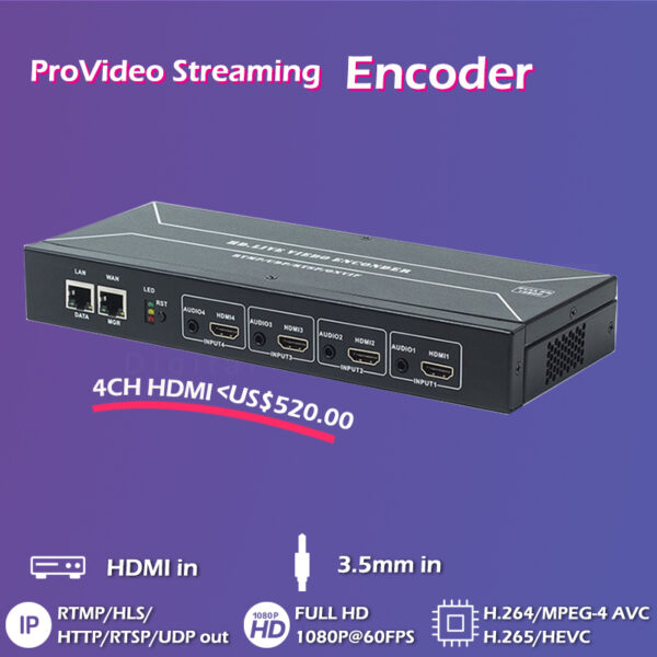 4Ch HD/HDMI H.265/H.264 Video Encoder -DMB-8904A