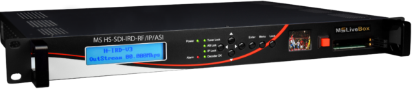 MS H-HD-IRD series Integrated Receiver Decoders have several applications for decoding program content to broadcast quality video. Equipped with every major video signal output, including HD-SDI, MS H-HD-IRD units can provide HD video to any display or professional video system. Also available are modern digital audio outputs on both optical Toslink and XLR connectors. Dolby AC/3 audio pass through is standard, and closed caption support for both 608 and 708 captioning systems is present. The V3 platform adds a front panel LCD video display for confidence monitoring, as well as an internal program multiplexer for combining content from both ASI and IP sources simultaneously. The web interface displays all available programs and corresponding PID’s. Each program can be independently added to either the ASI or IP outputs. The all selected programs are multiplexed into a single MPTS output. Additionally, the IP output can be configured for up to 32 SPTS single program stream outputs, each with different address and port settings. This allows the V3 system to be used as an intelligent ASI to IP or RF to IP Gateway with add drop and ASI multiplexing capabilities. Combined multi program transport streams carried over IP can also be separated into their corresponding single program streams. The RF tuner can be configured for QAM, 8VSB (ATSC), DVB-T, DVB-C, or DVB-S2 signal sources. Two CAS card slots allow decoded of encrypted programing. MS HD-IRD units can be used for converting broadband programing to uncompressed HD video, as well as multiplexing and retransmitting programs to both ASI and IP outputs. MS HD-IRD systems are a reliable and versatile platform for broadcast program decoding and TS protocol conversion.